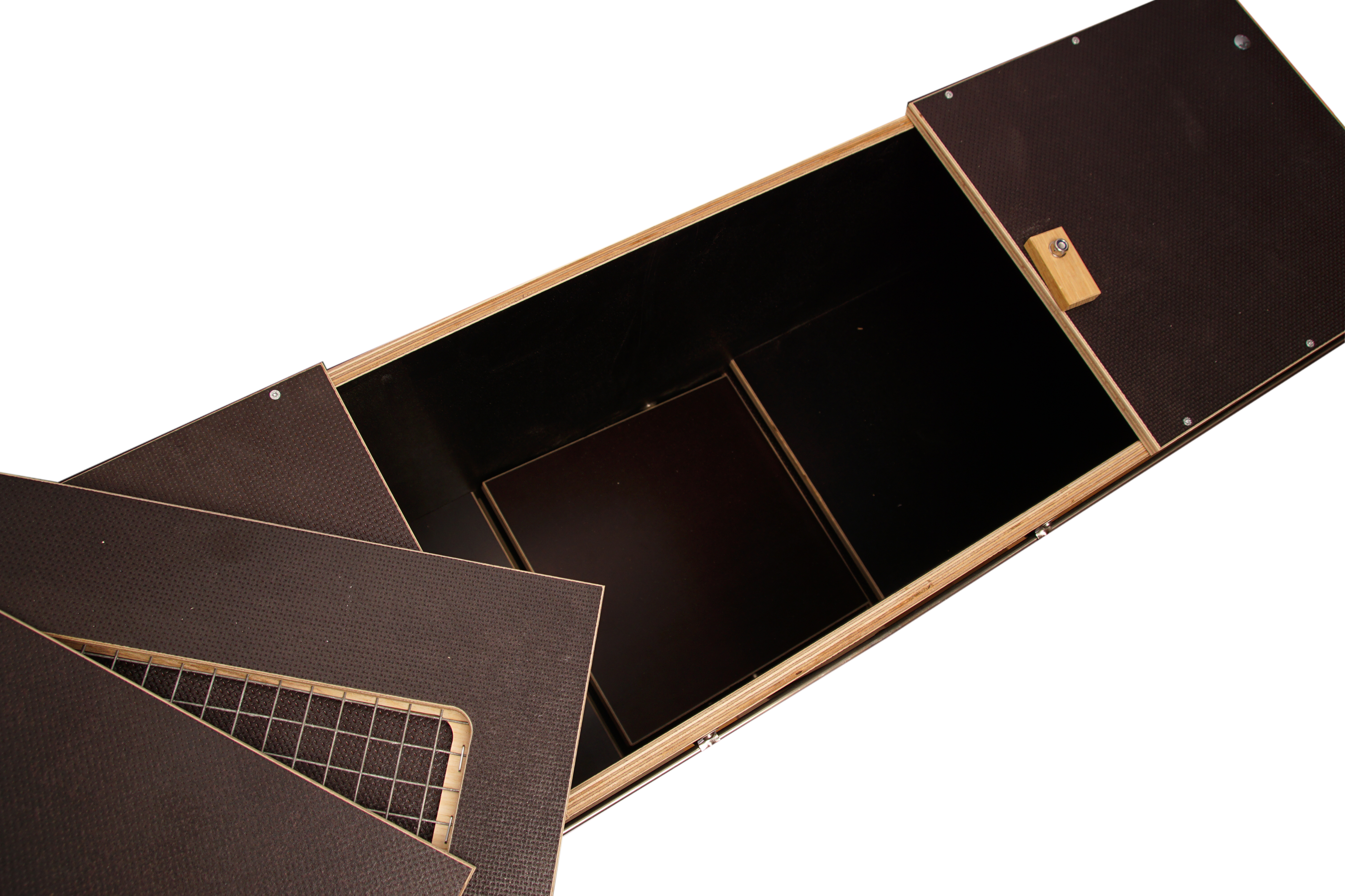 In der Mitte der Falle befindet sich eine herausnehmbare Klappe mit Drahtsichtfenster und drehbarem Deckel.