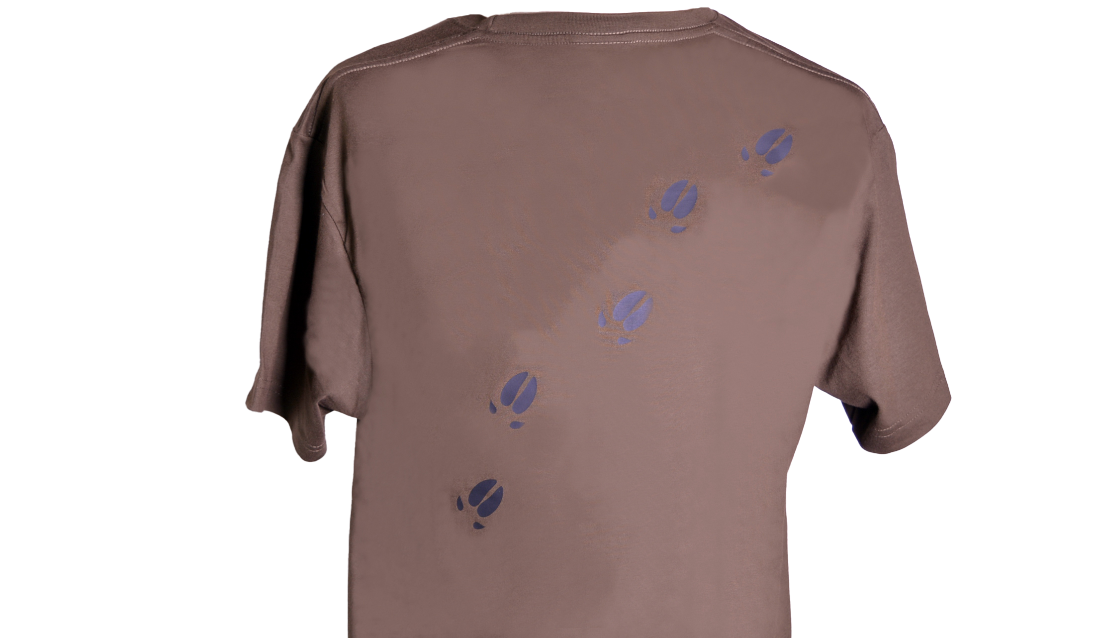 Ein schönes T-Shirt für Jagdfreunde mit dem lustigen Spruch "Schwein gehabt" auf der Vorderseite und Schweinepfoten auf der Rückseite.